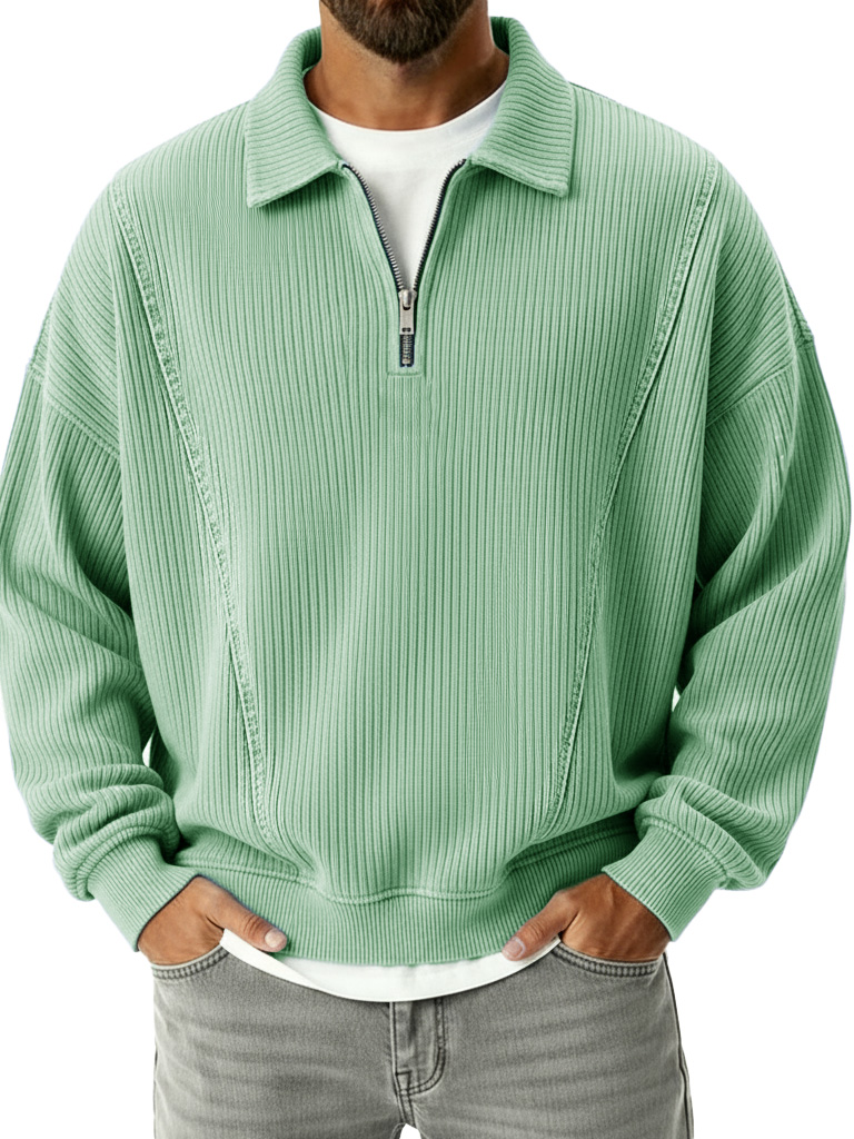 • Herren Stilvolle Viertel-Reißverschluss Corduroy Gerippte Polo Sweatshirt