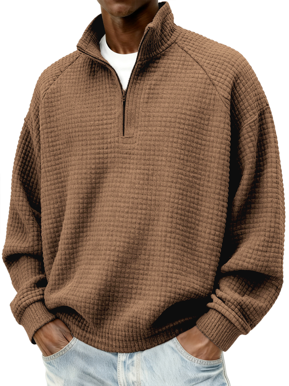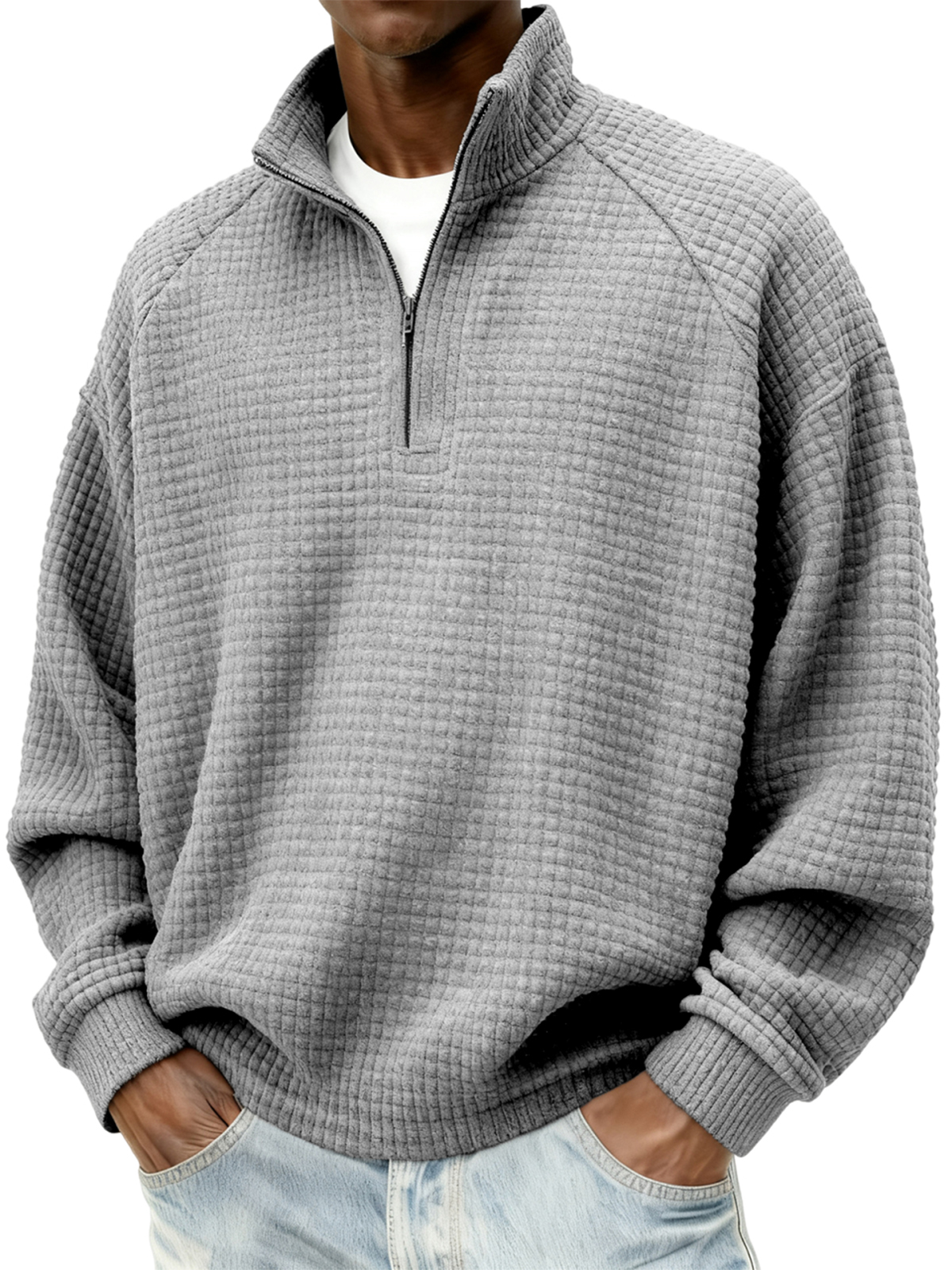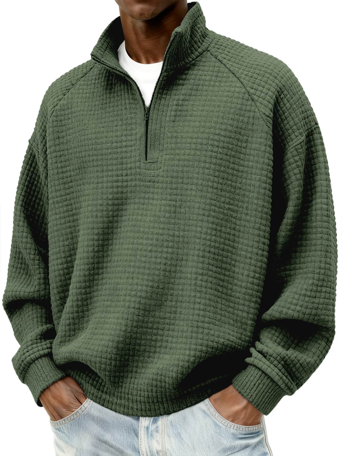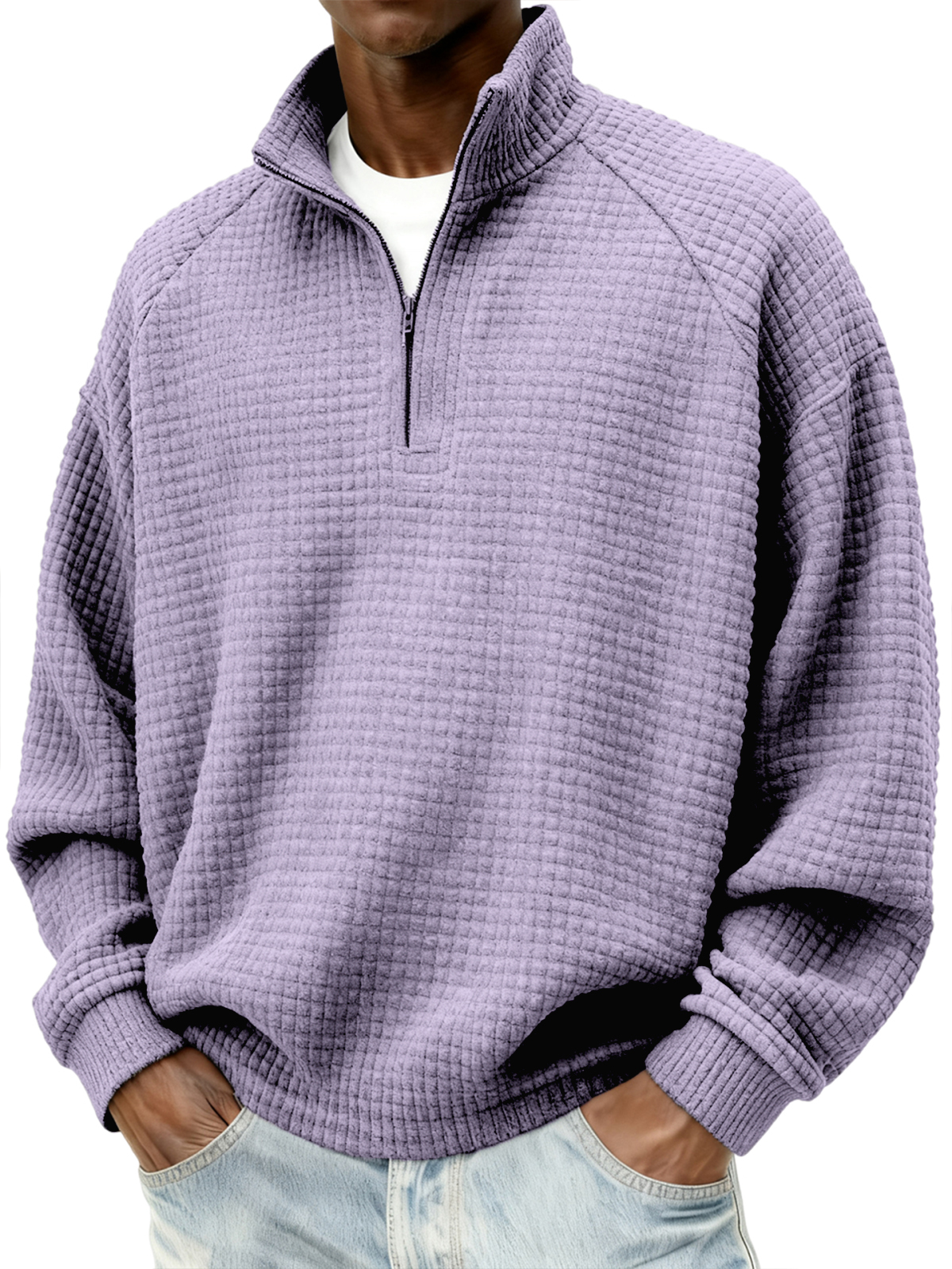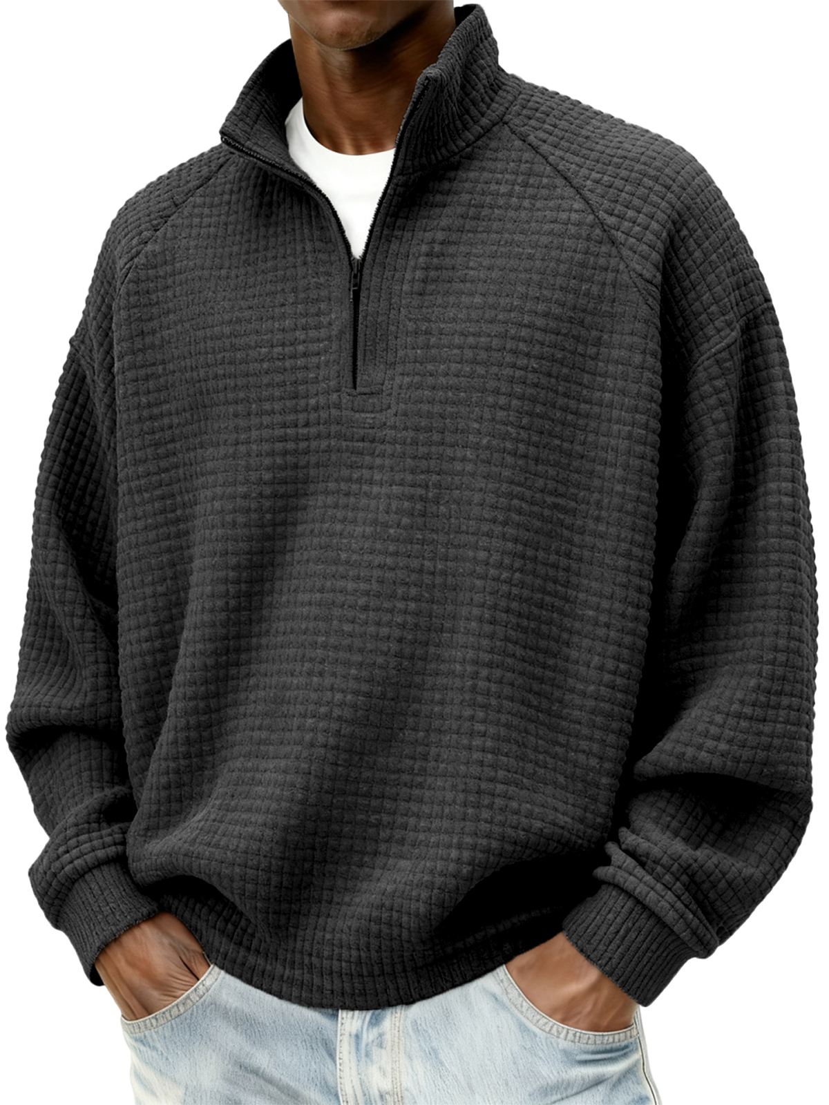 Herren Quarter-Zip Jacquard Steppkleidung mit kleinen Quadraten Texturiertes Raglan Polo Sweatshirt