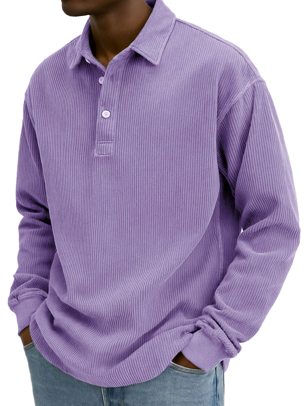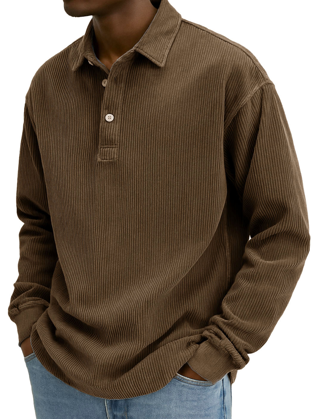 Men's Stylish Retro Corduroy Lapel Long-sleeved Polo Shirt