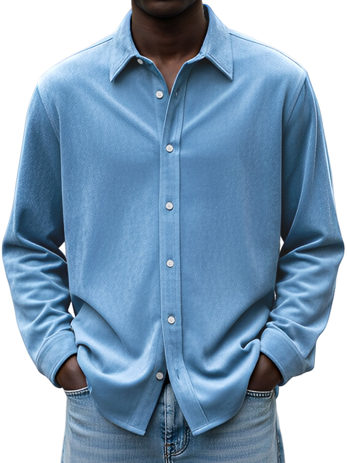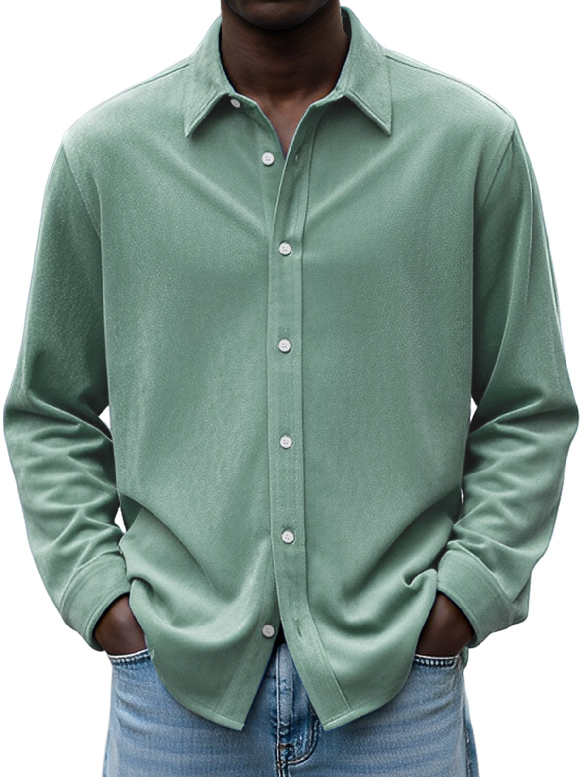 Men's Simple Daily Casual Design Suede Solid Color Lapel Long-sleeved Shirt$42.99 USD -