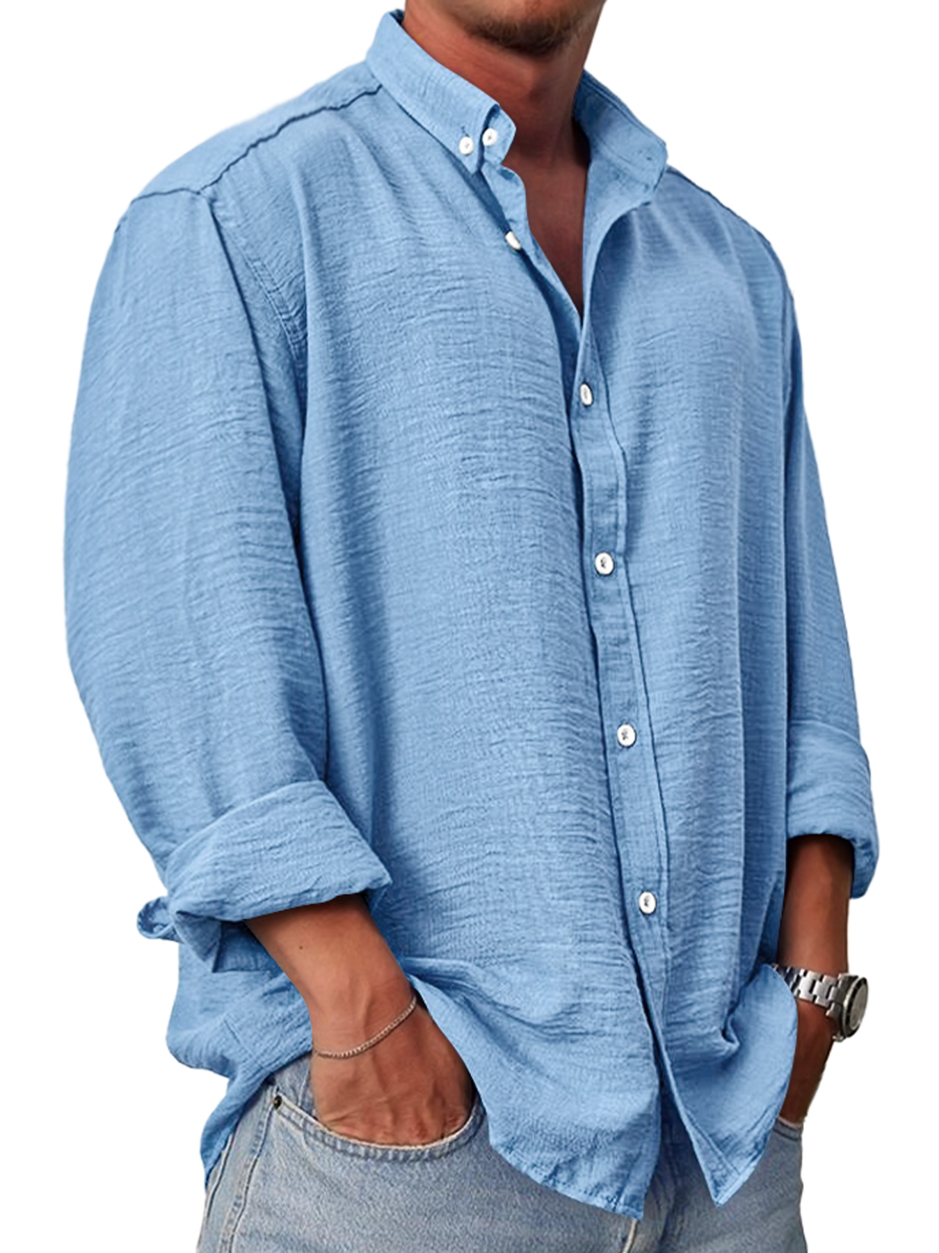 Men's Cotton And Linen Casual Comfortable Everyday Long Sleeved Shirt$42.99 USD -