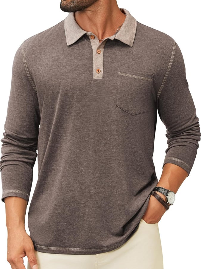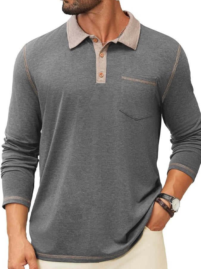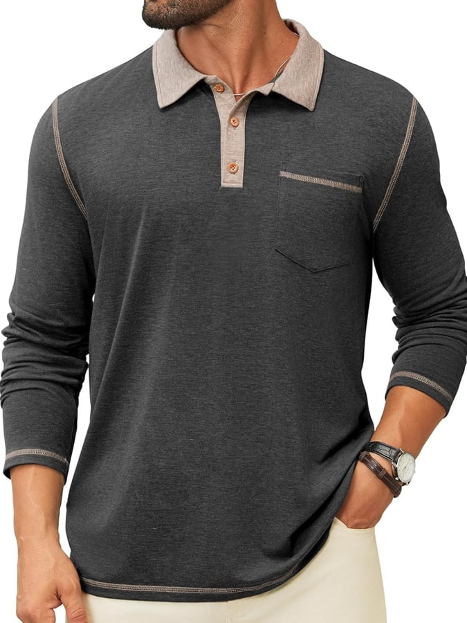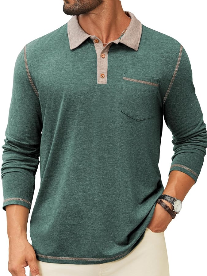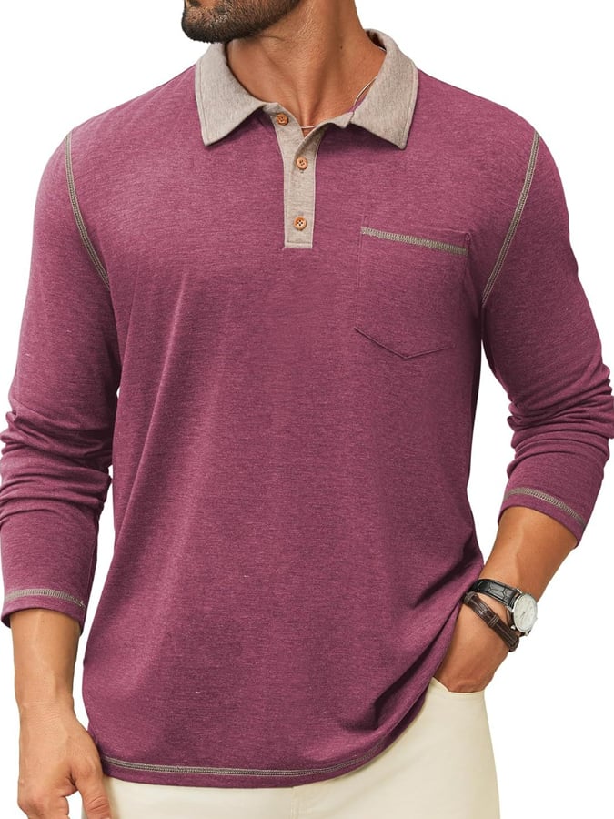 Men's Retro Colorblock Pocket Polo Shirt