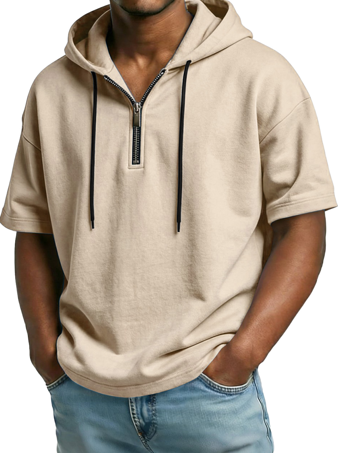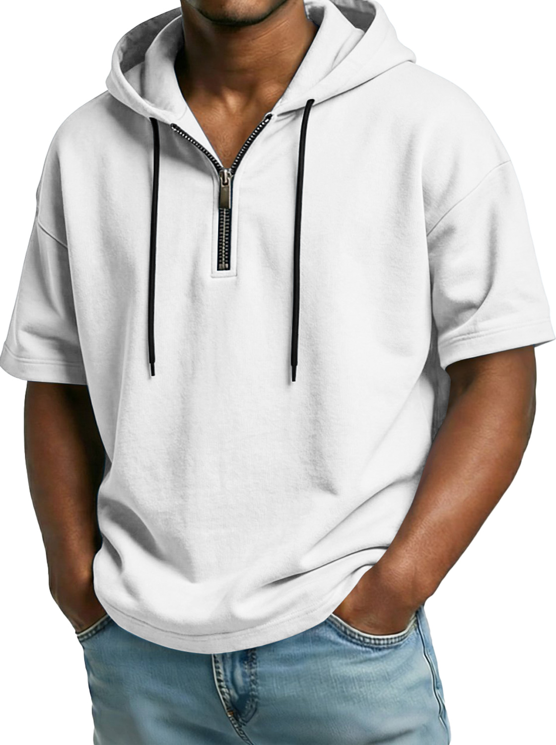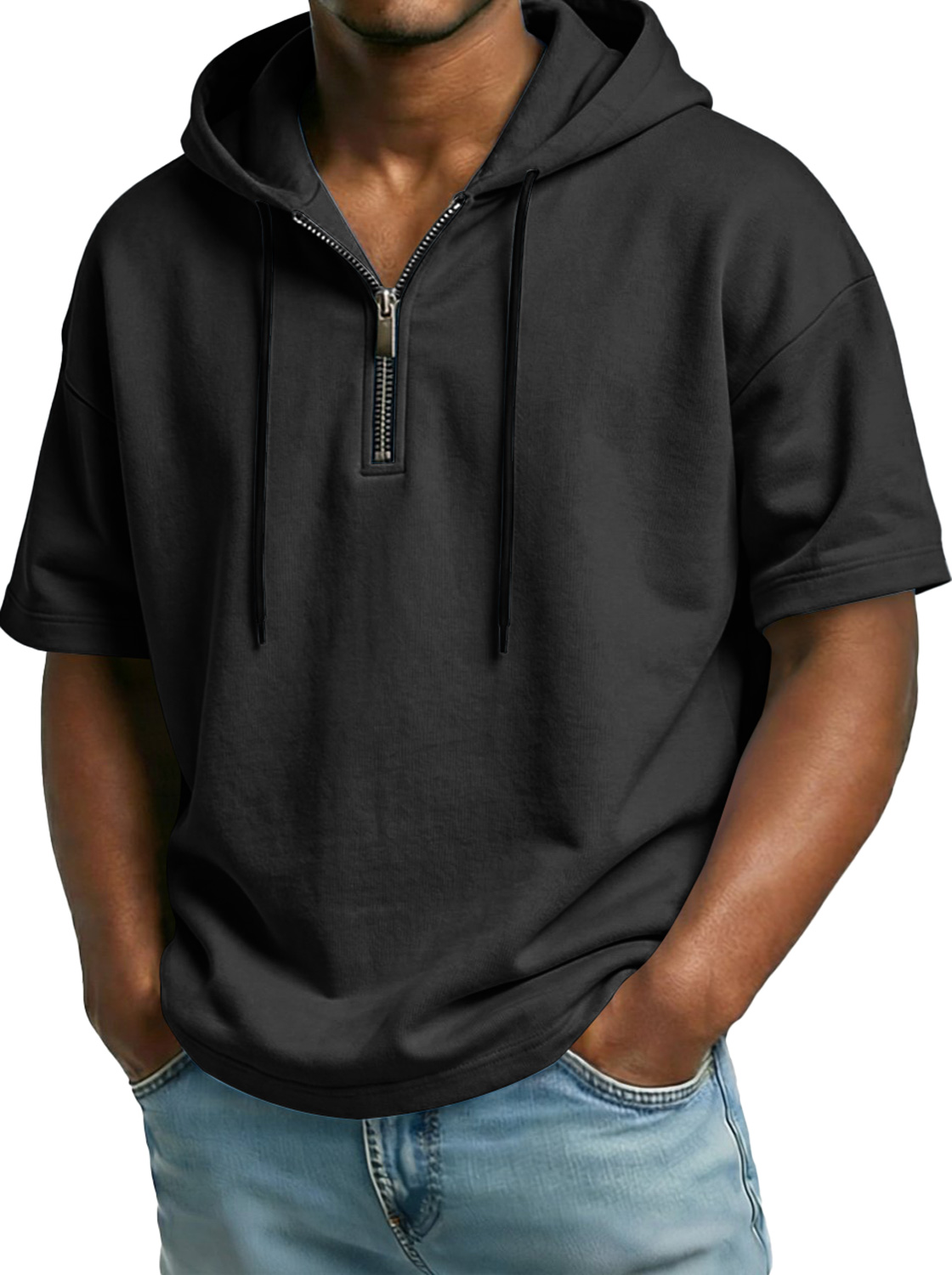 Men's Comfortable Hooded Zip-up Short-sleeved Casual Top