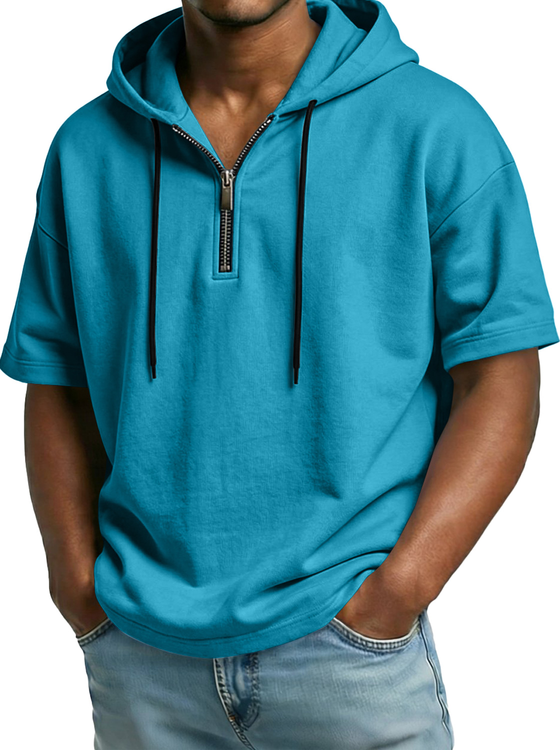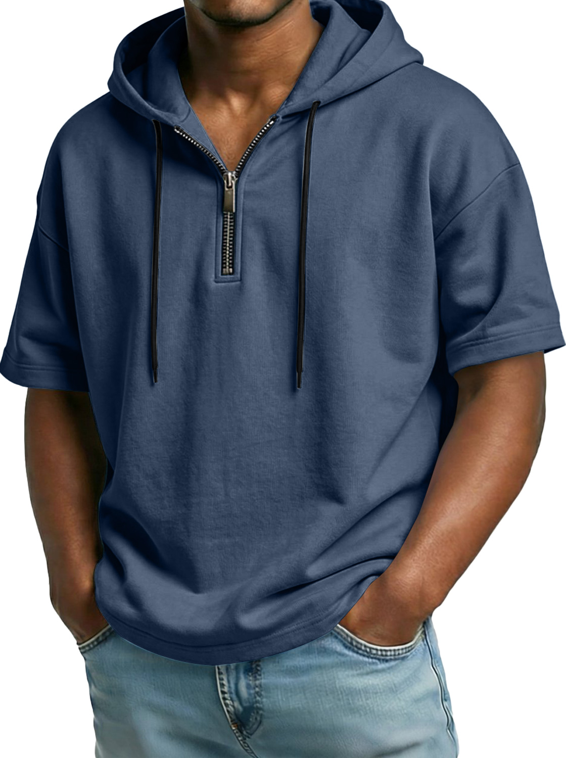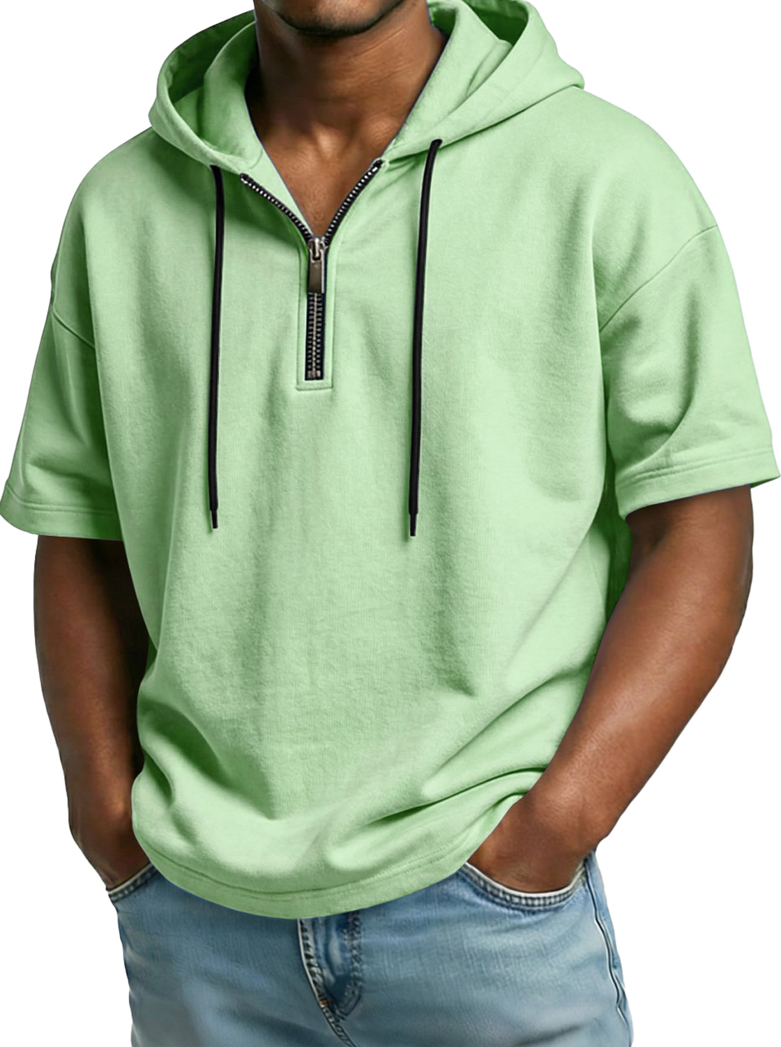Men's Comfortable Hooded Zip-up Short-sleeved Casual Top