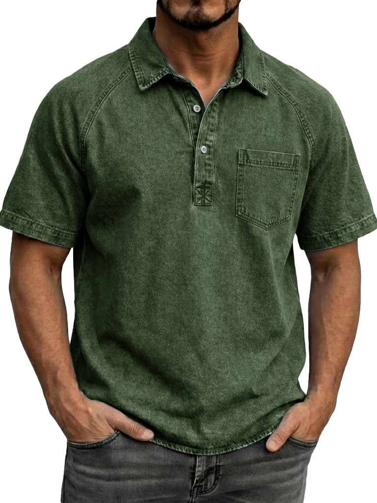 Men's Fashionable Retro Distressed Lapel Short-sleeved Polo Shirt