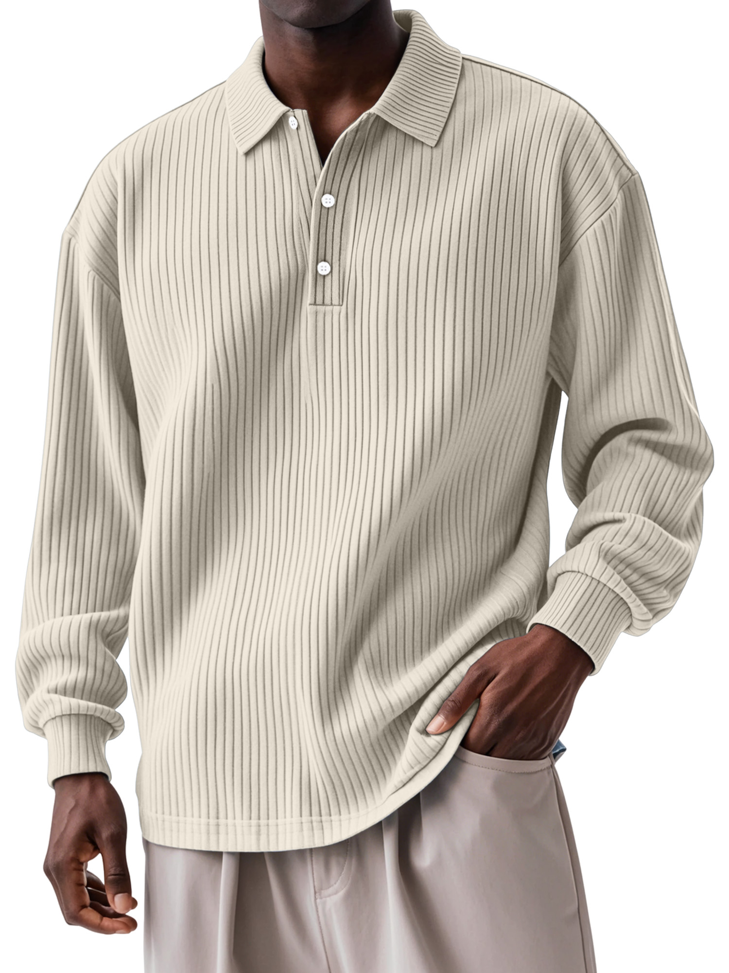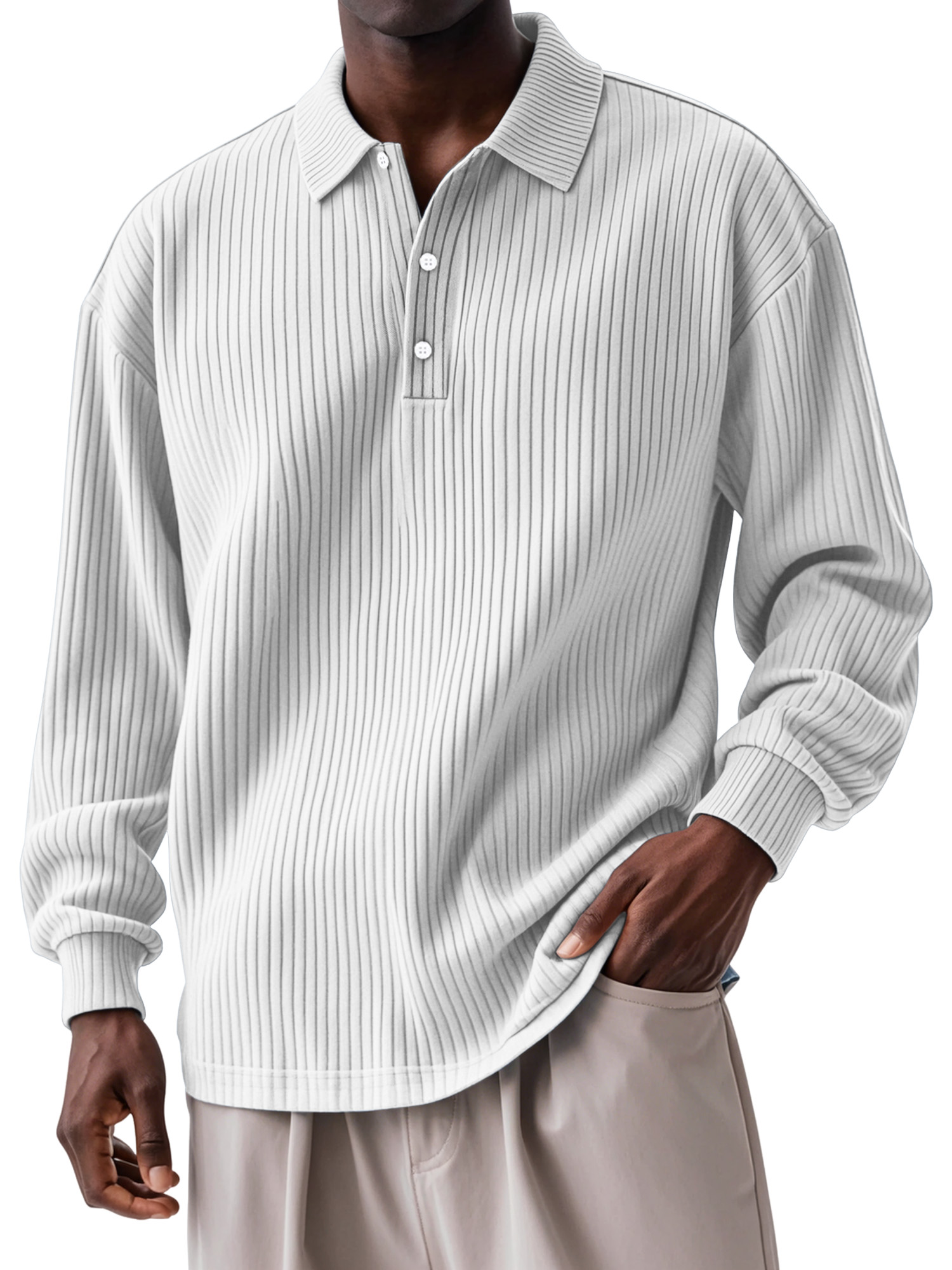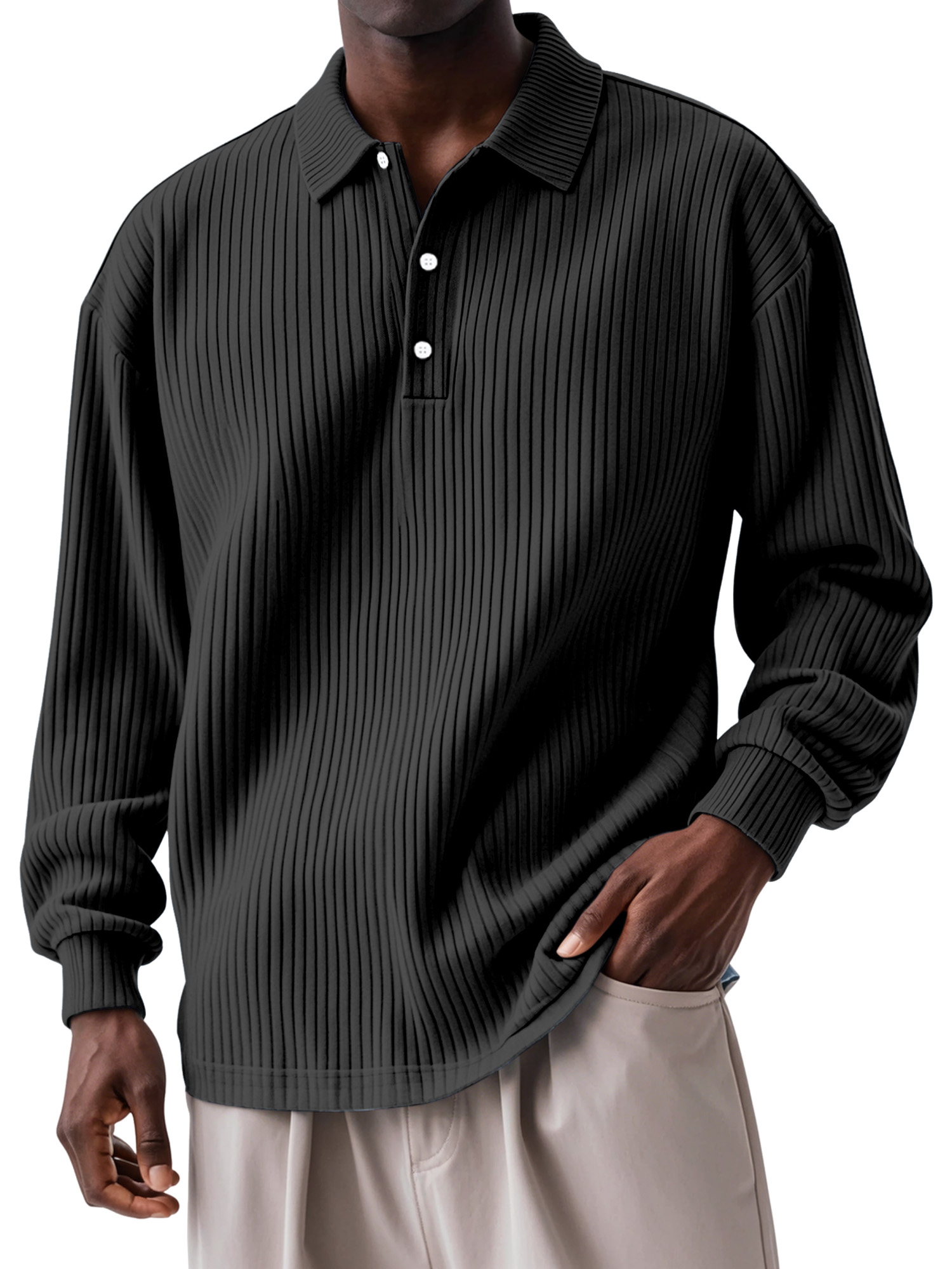 Men's Daily Solid Color Vertical Button Long Sleeve Polo Shirt