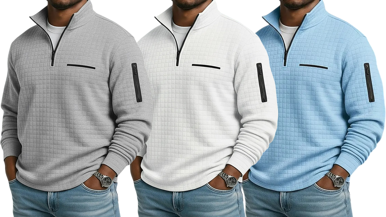 Designed with a soft waffle-knit texture and a clean quarter-zip silhouette, this men’s pullover delivers everyday comfort with effortless style. Perfect for layering or wearing on its own, it’s built for versatility across seasons.
