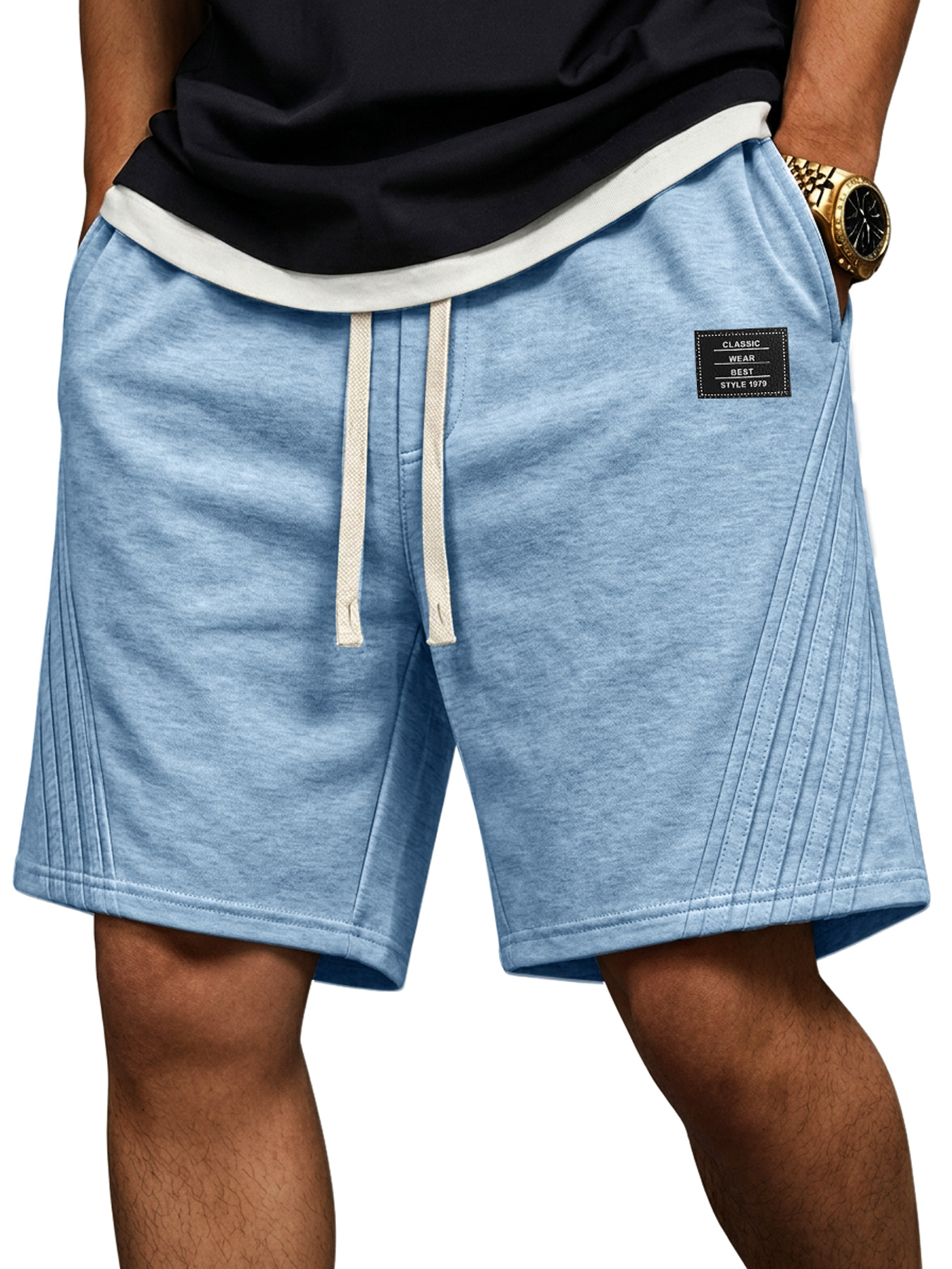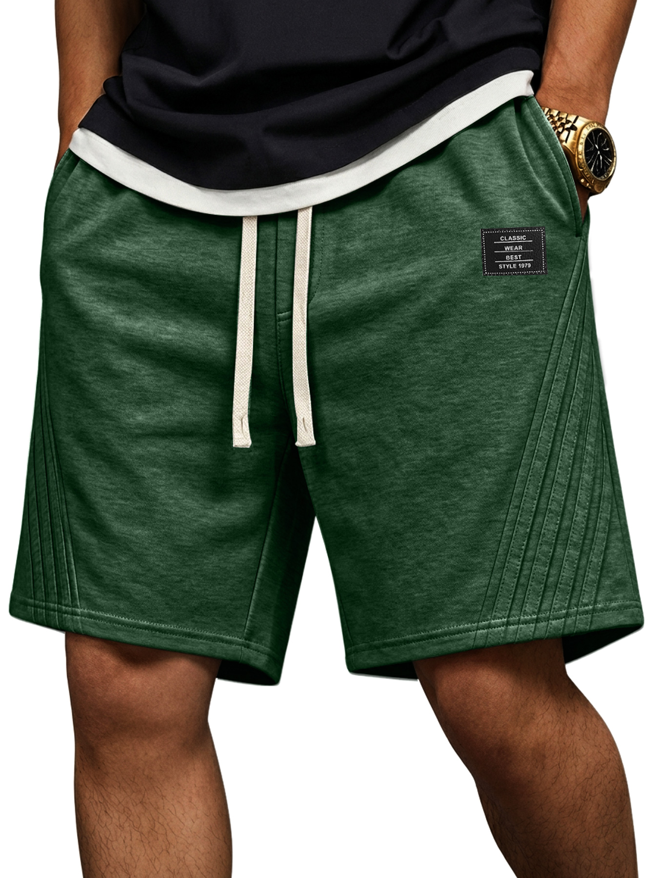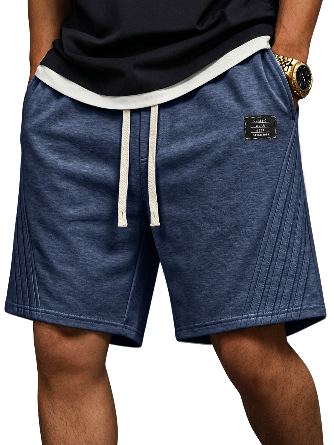 Men's Casual Loose-fitting Shorts With Diagonal Stripes And Embroidered Logo On The Side