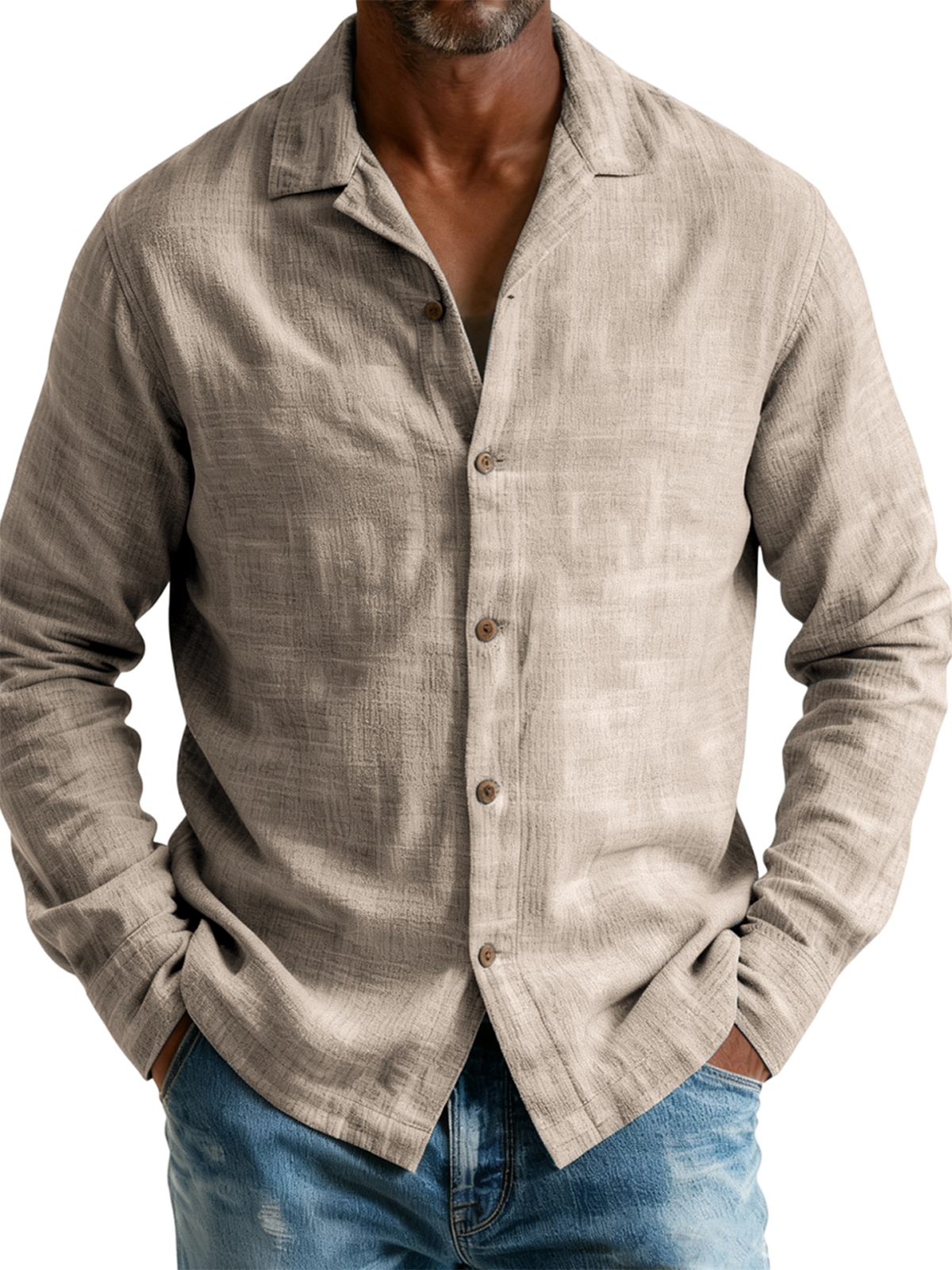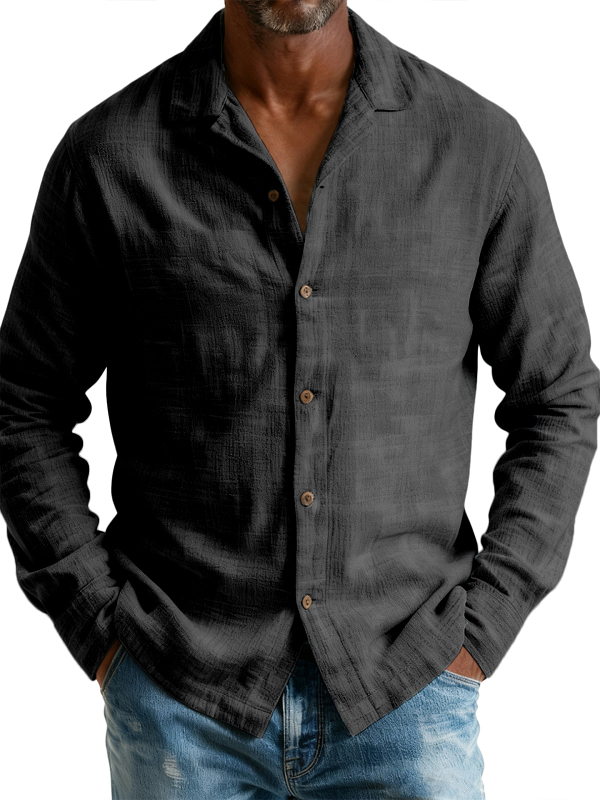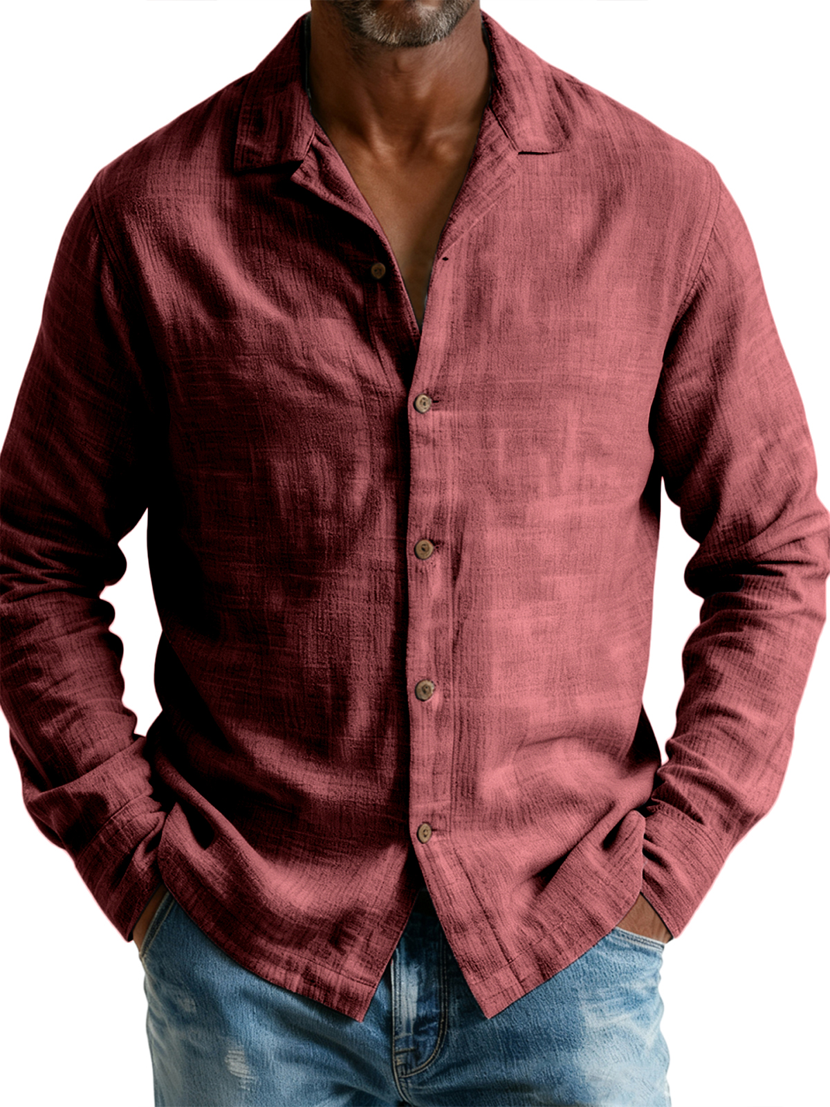 Men's Breathable Cotton and Linen Simple Casual Long-sleeved Shirt
