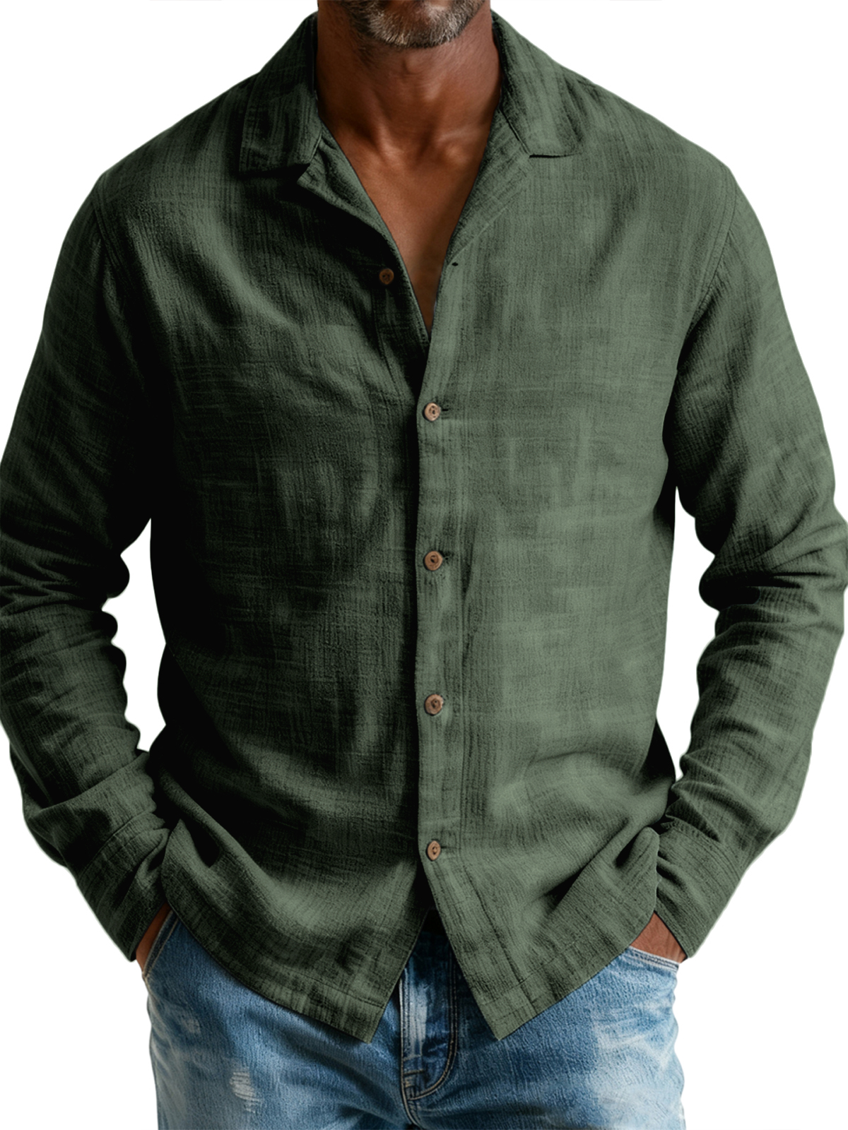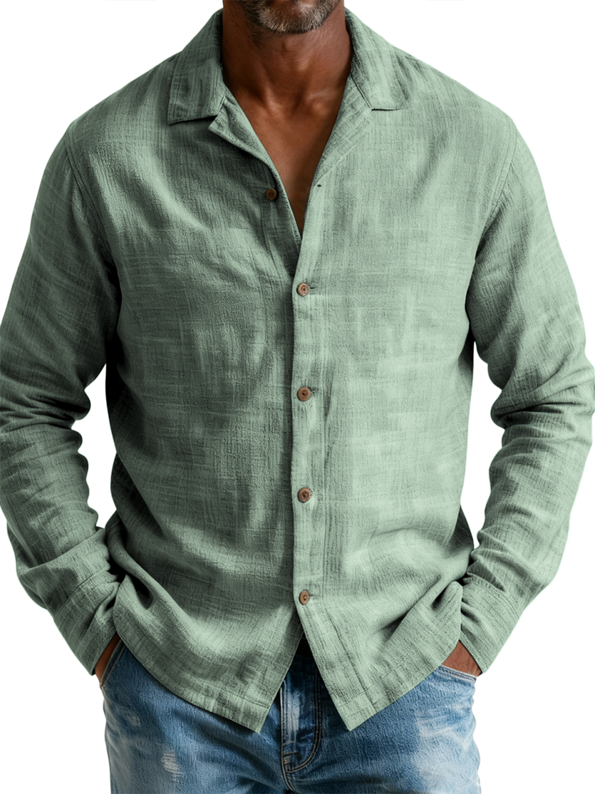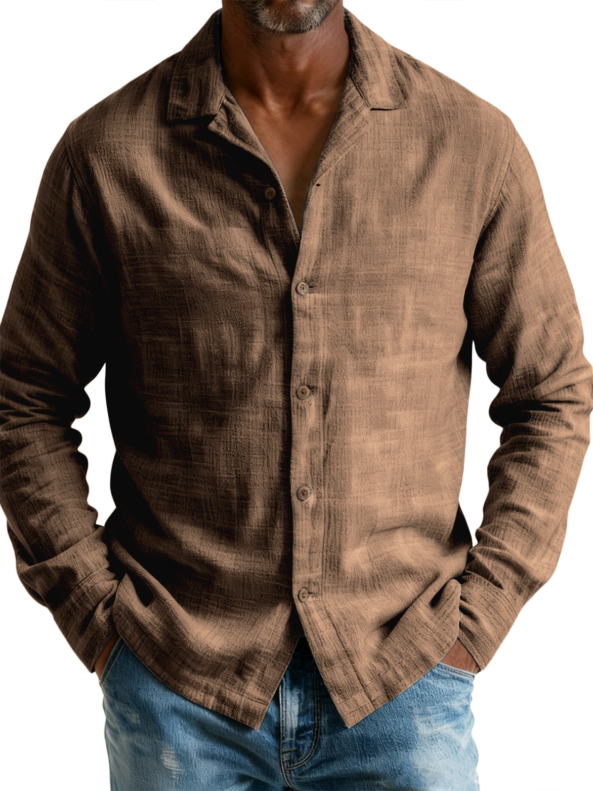 Men's Breathable Cotton and Linen Simple Casual Long-sleeved Shirt