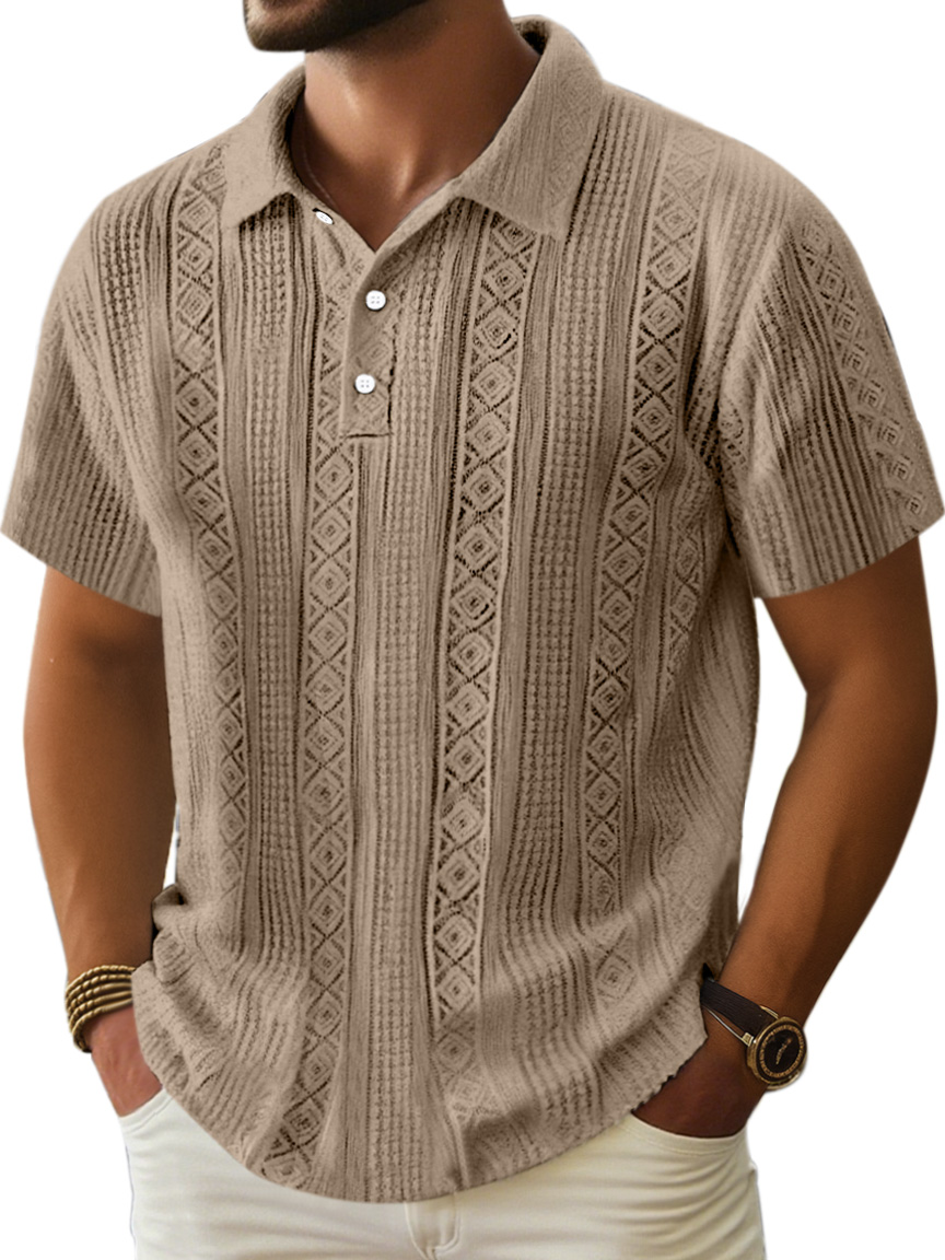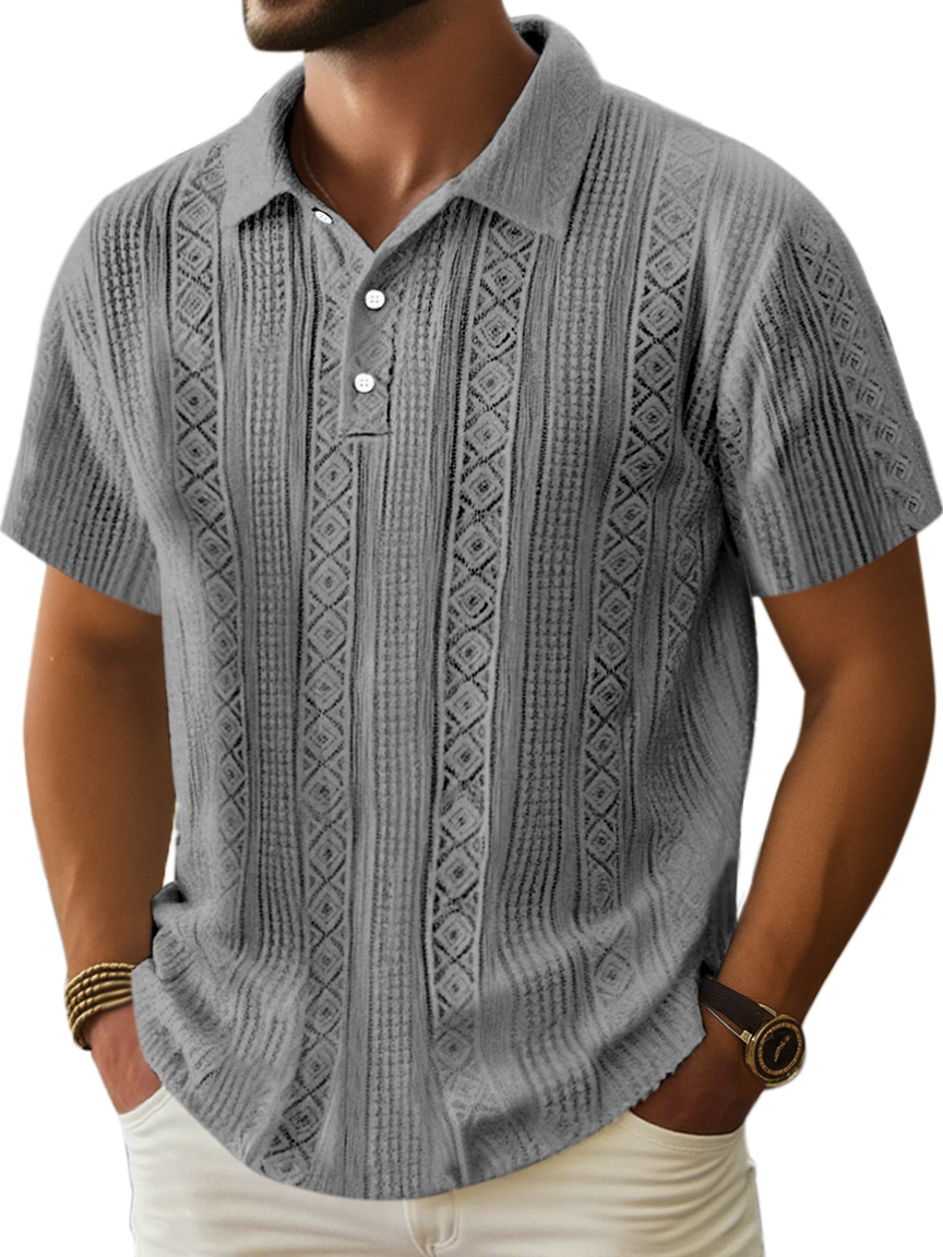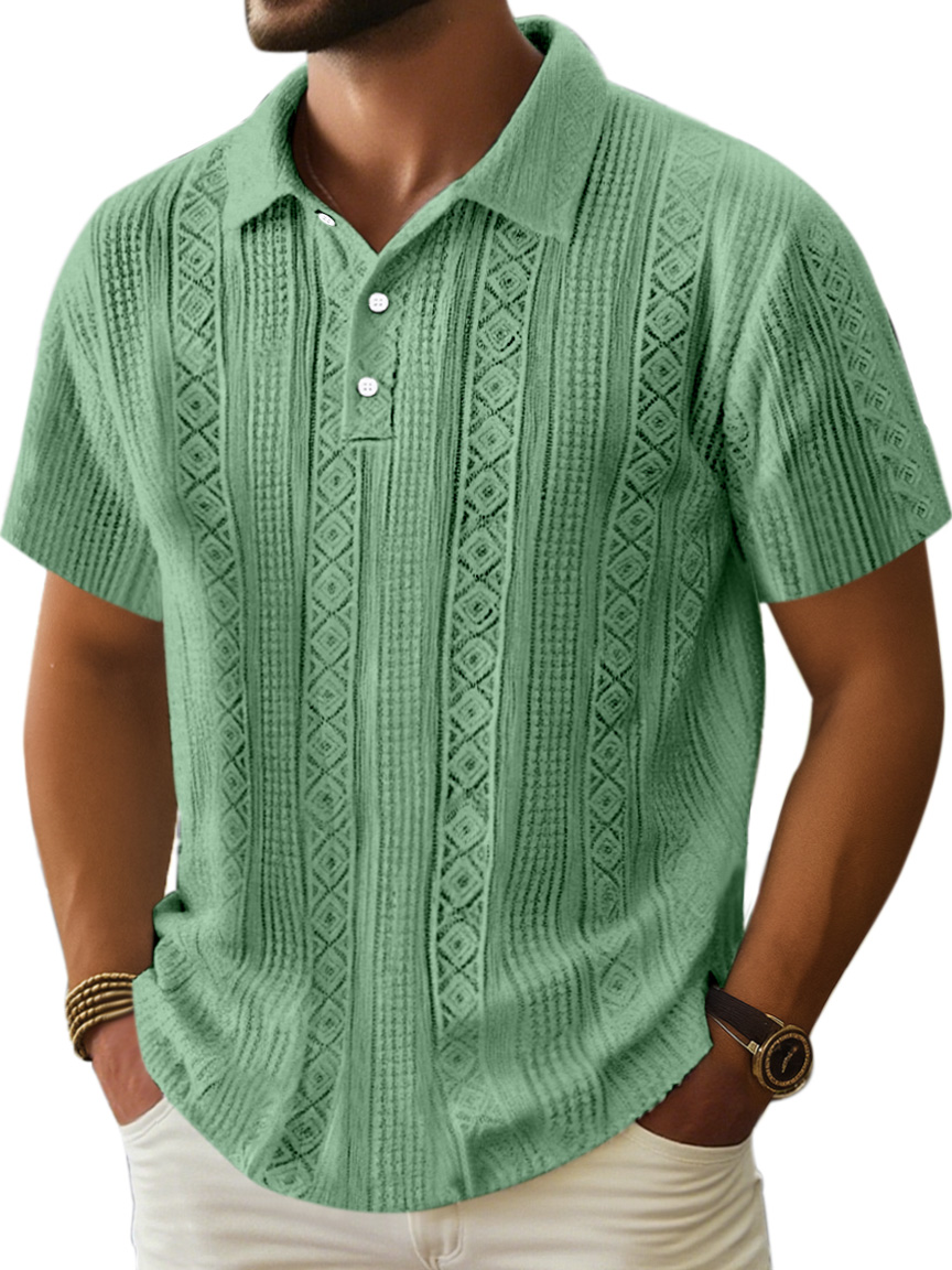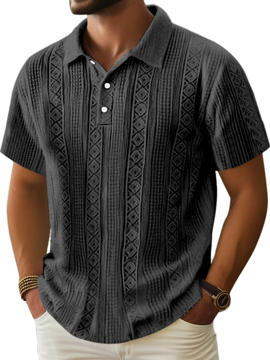 Men's Comfortable Solid Color Texture Short Sleeve Lel Polo Shirt