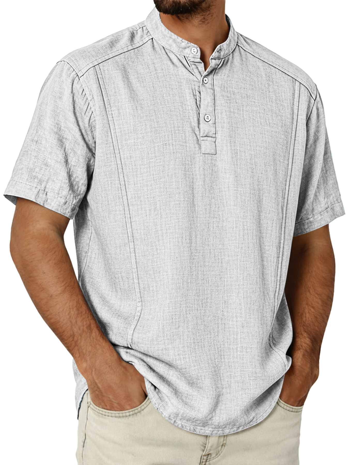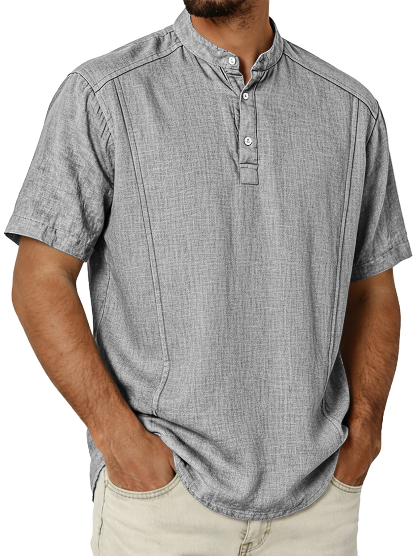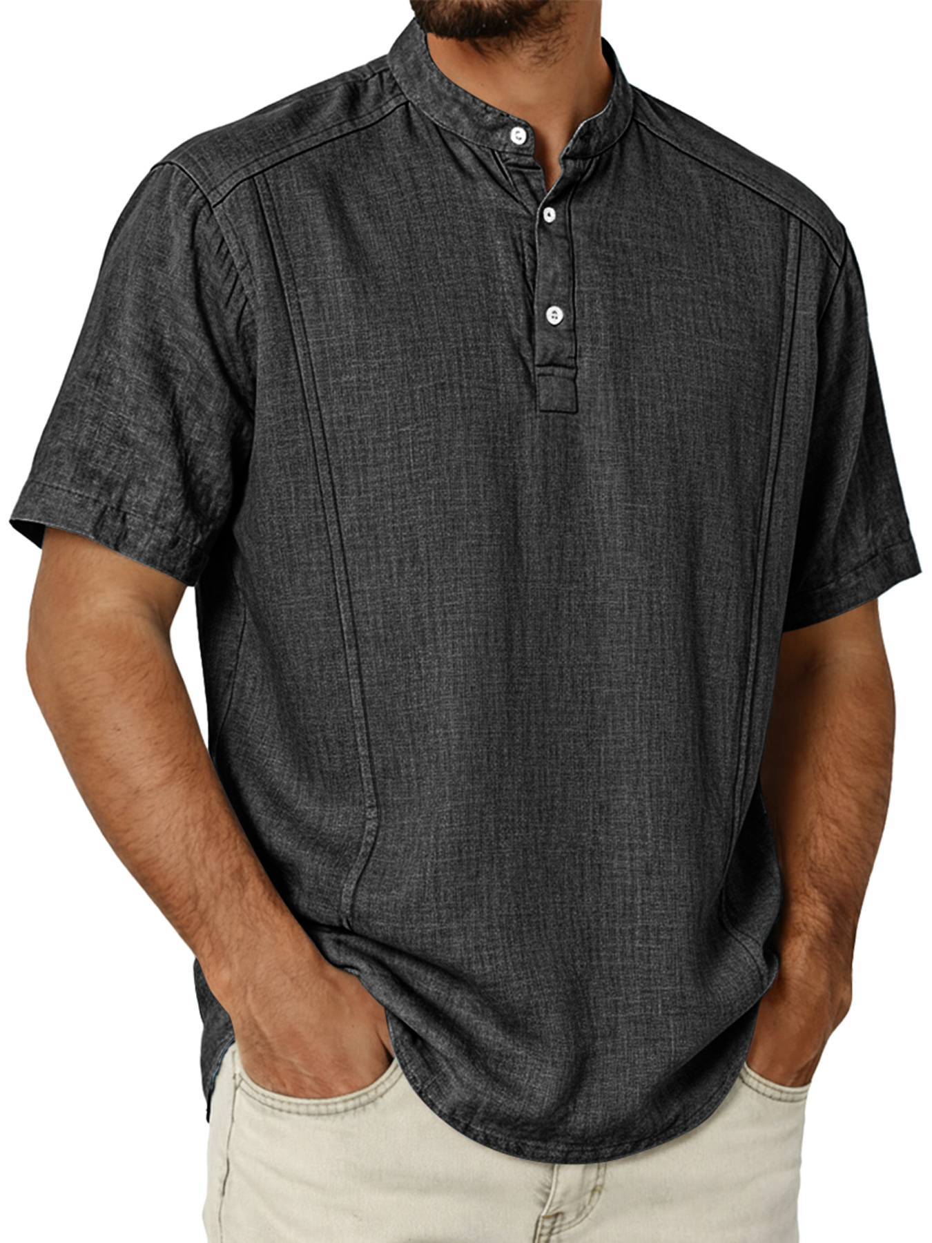 Men's Cotton And Linen Deconstructed Design Casual And Comfortable Short-sleeved Henley Shirt