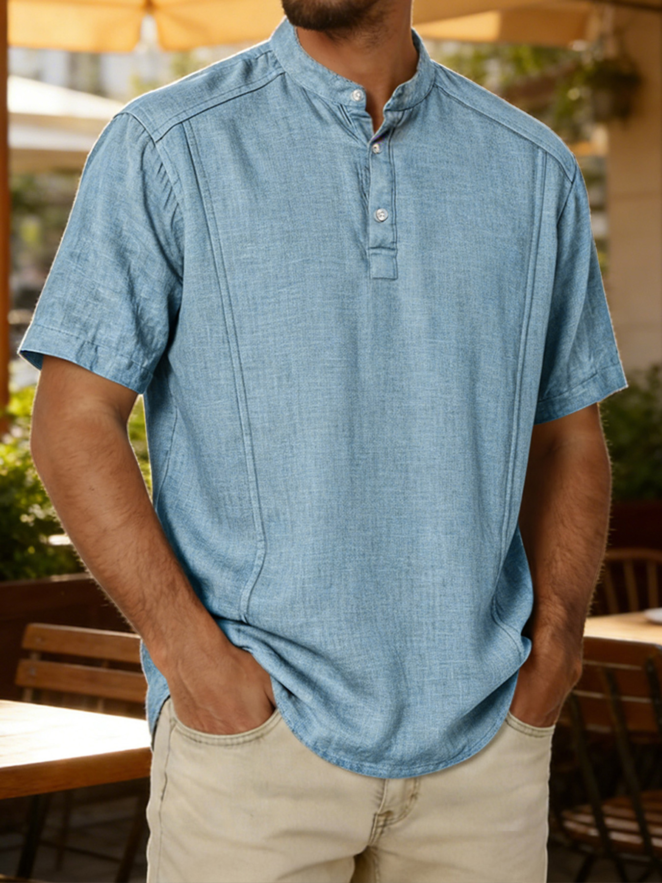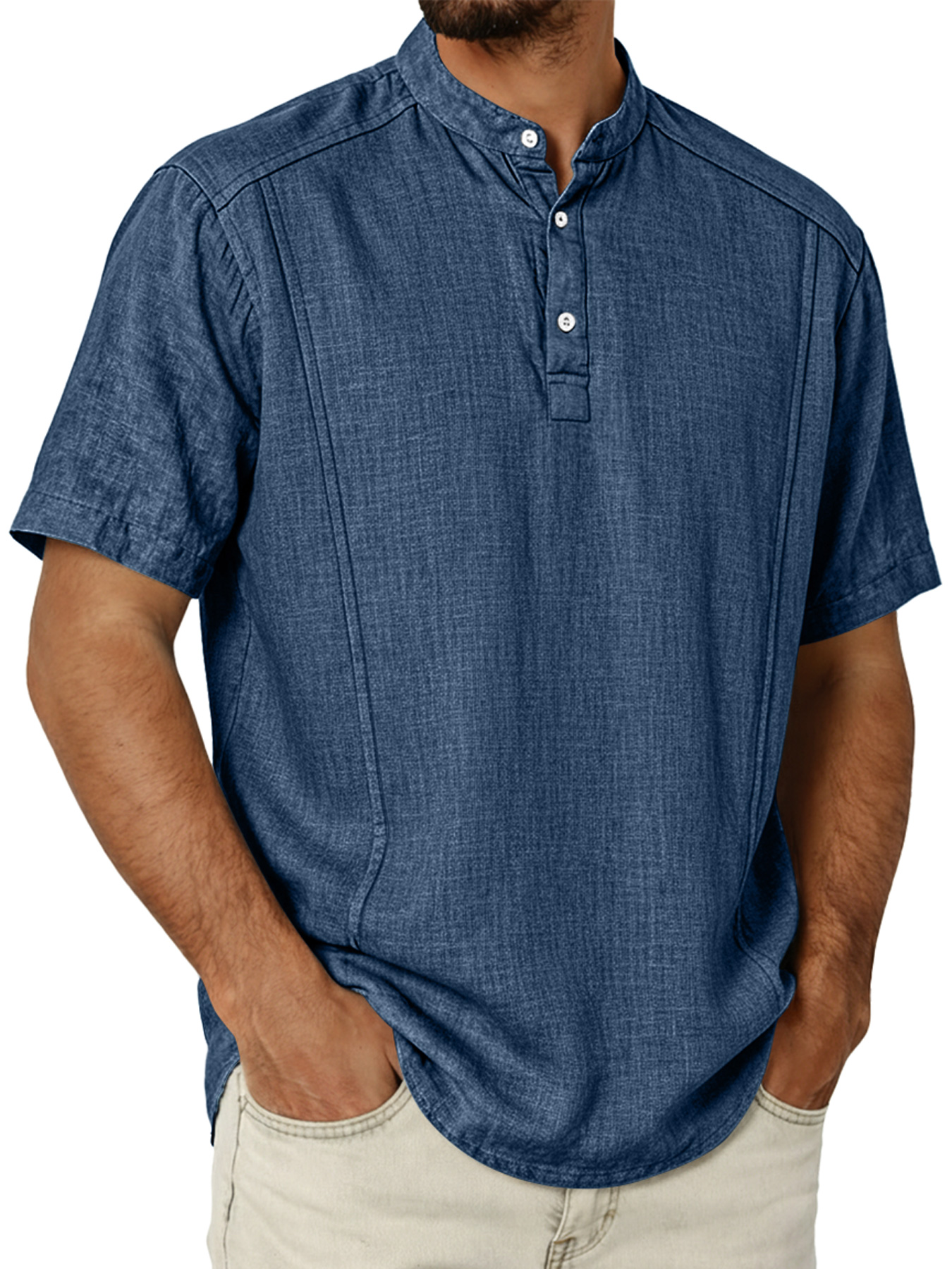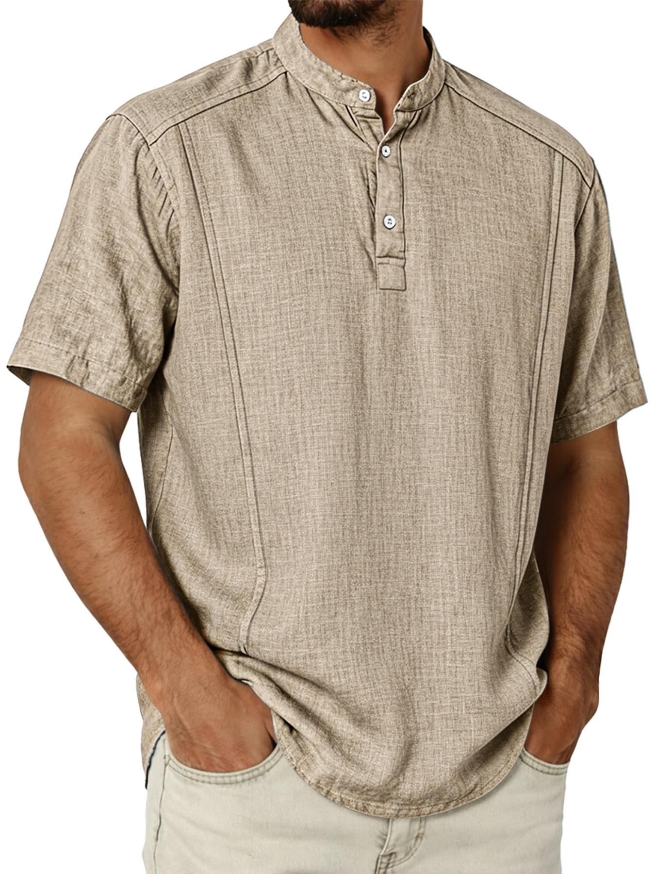 Men's Cotton And Linen Deconstructed Design Casual And Comfortable Short-sleeved Henley Shirt