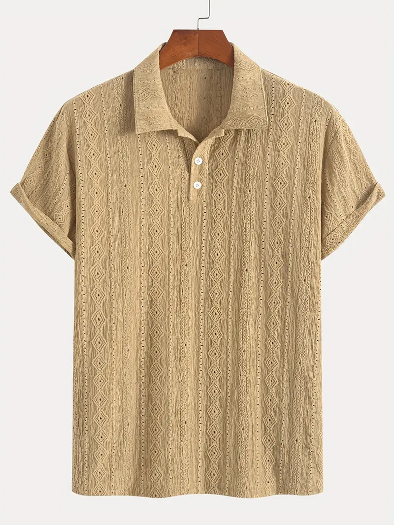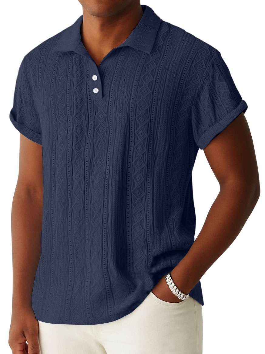 Men's Daily Jacquard Textured Striped Casual Comfortable Polo Tops