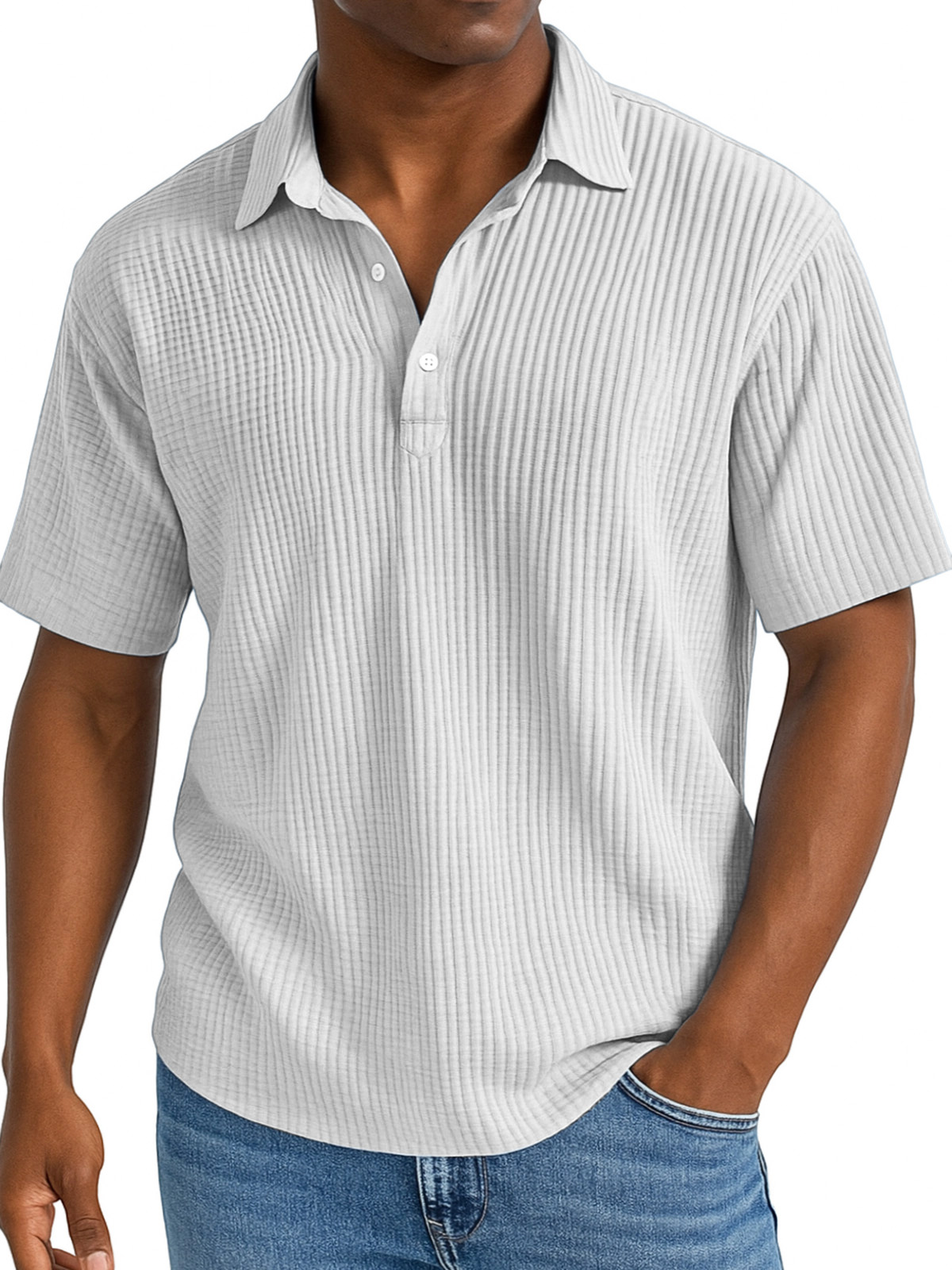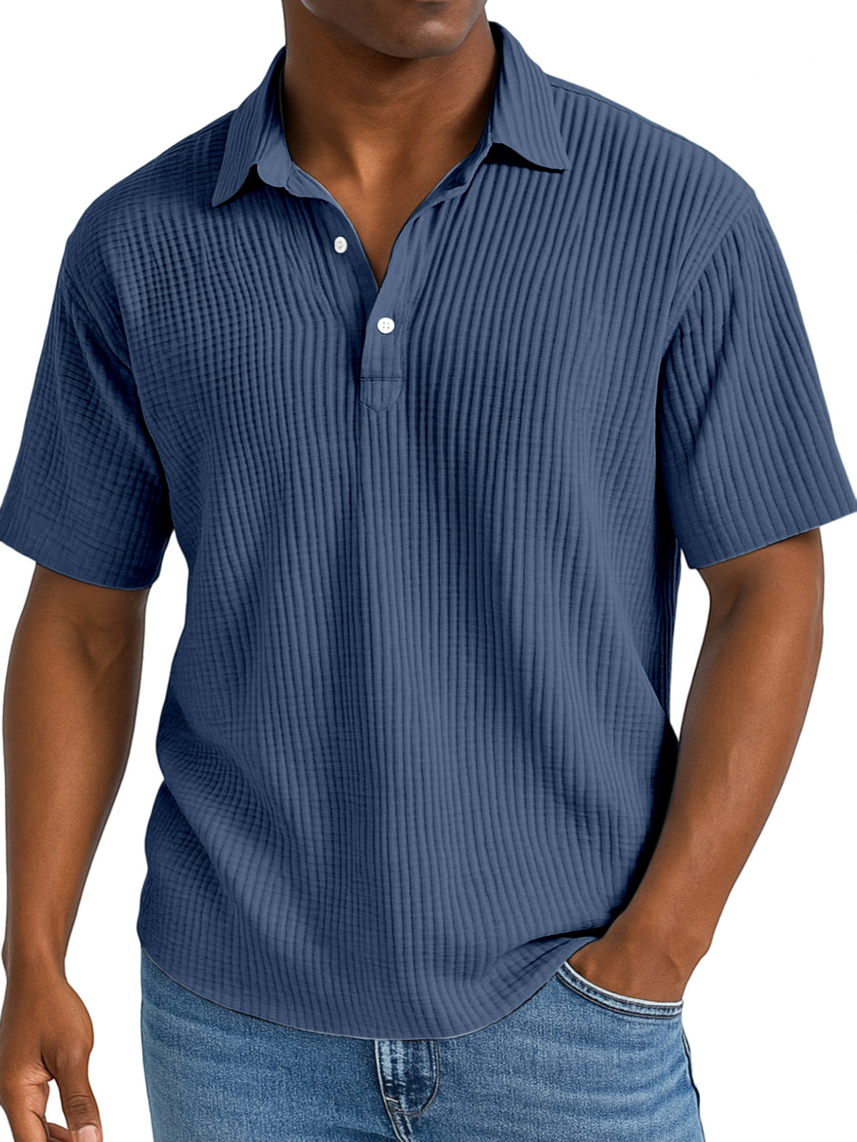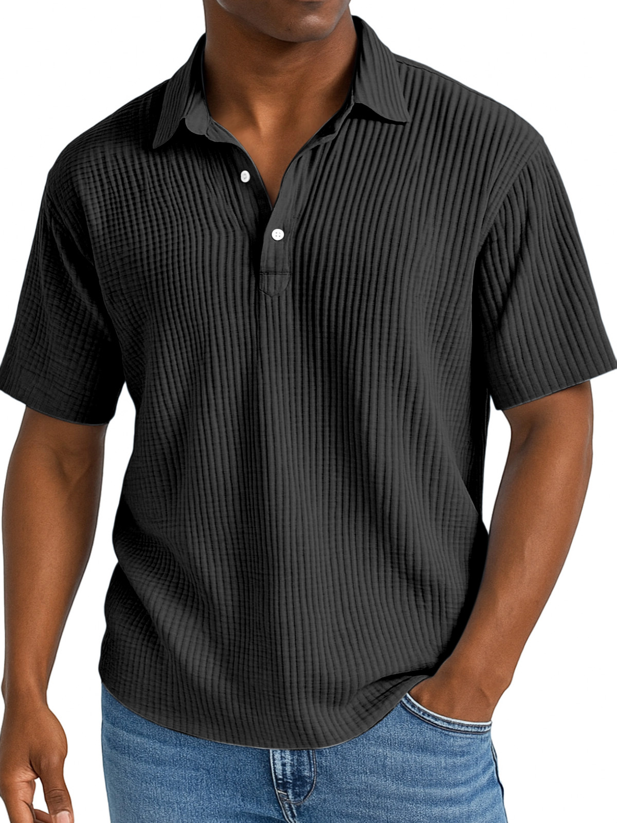 Men's Daily Simple And Comfortable Pleated Texture Lapel Polo Shirt