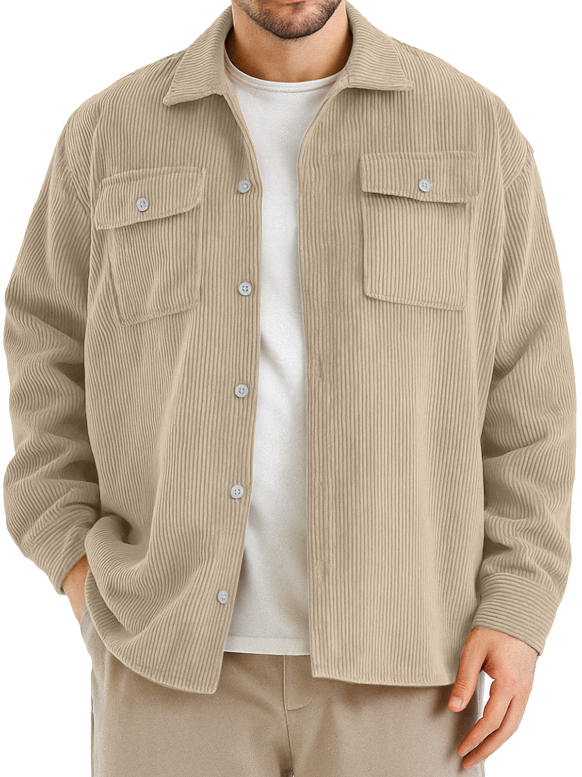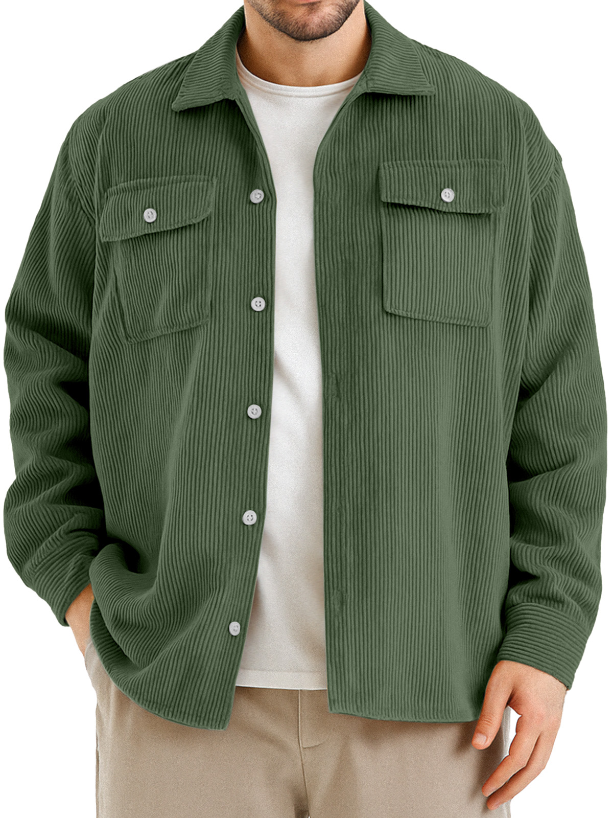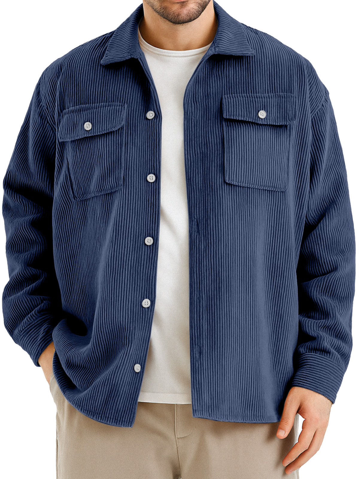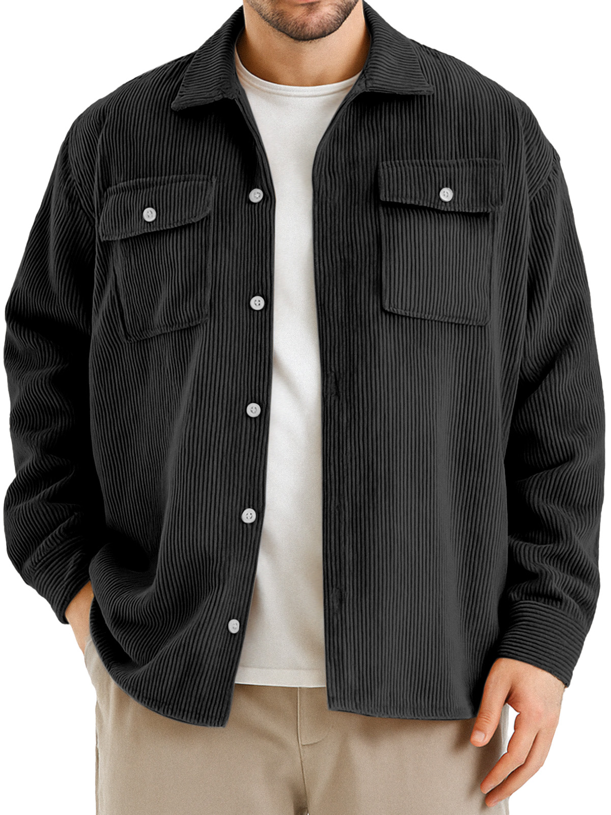 Men's Retro Simple Double Pocket Corduroy Long Sleeve Shirt