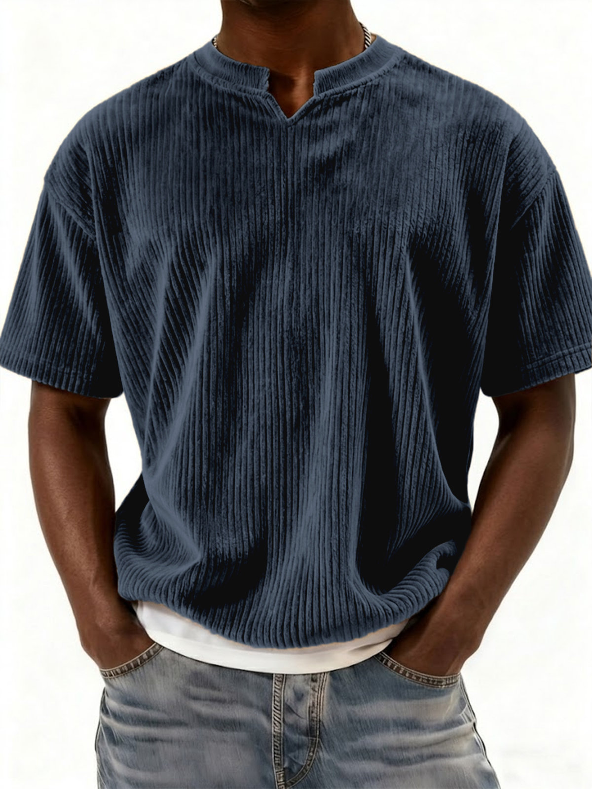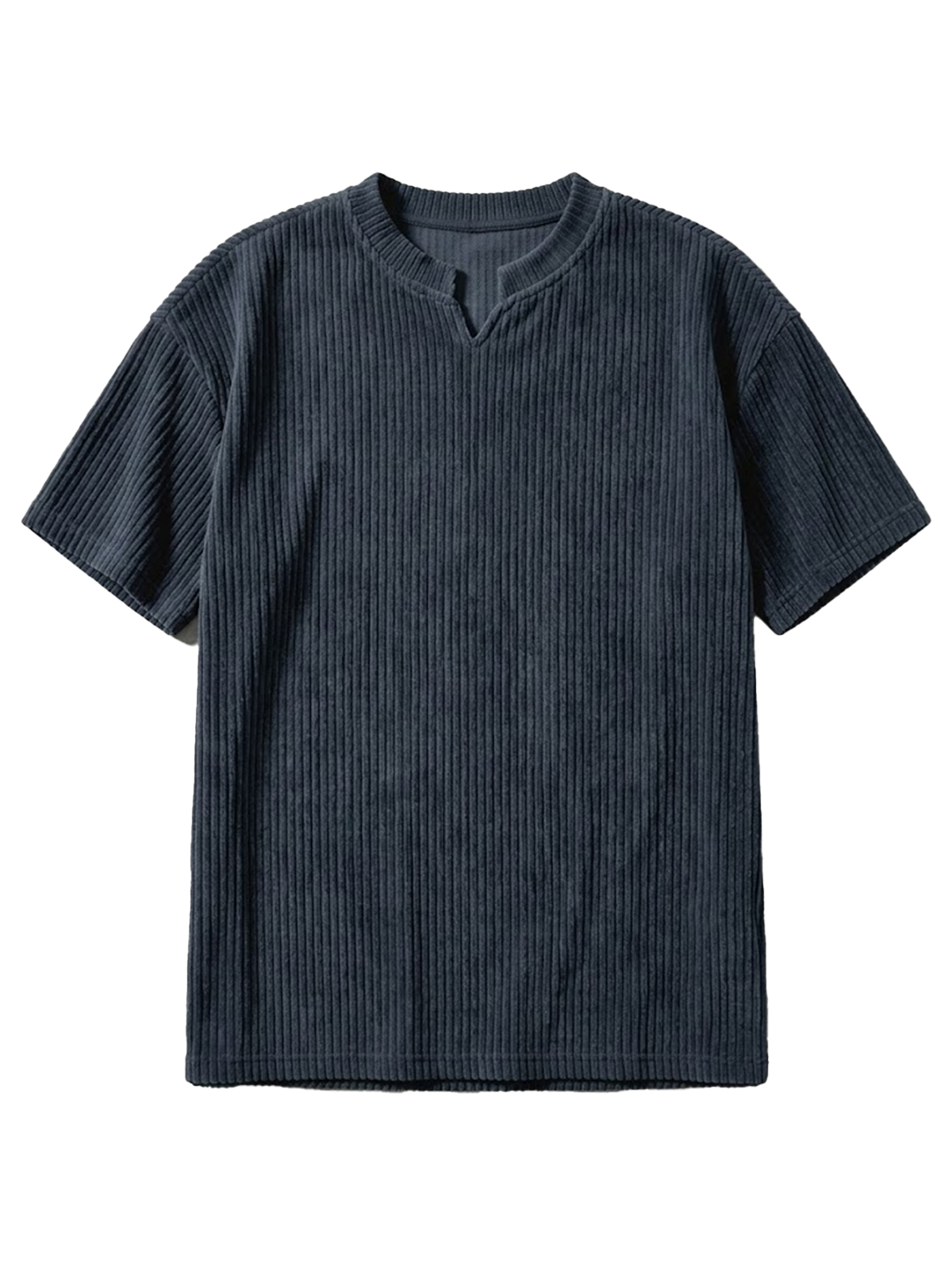 Retro Ribbed V-neck Casual Short-sleeved Top